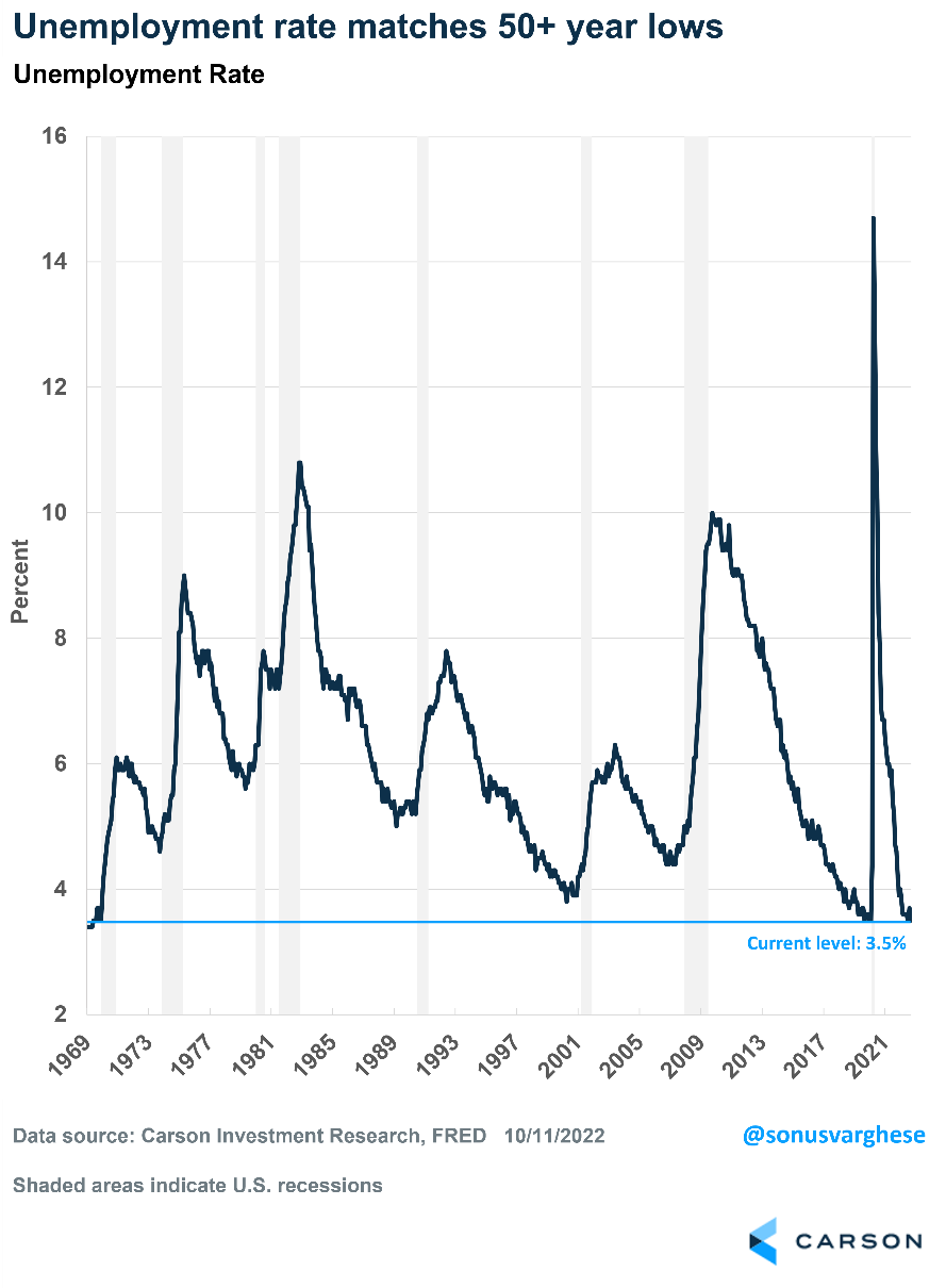Unemployment fell from 3.7% to 3.5% in September, going in the opposite direction of what Federal Reserve officials expect amid their interest rate hikes. The 3.5% rate matches the lowest it reached during the last expansion and is the lowest since 1969.