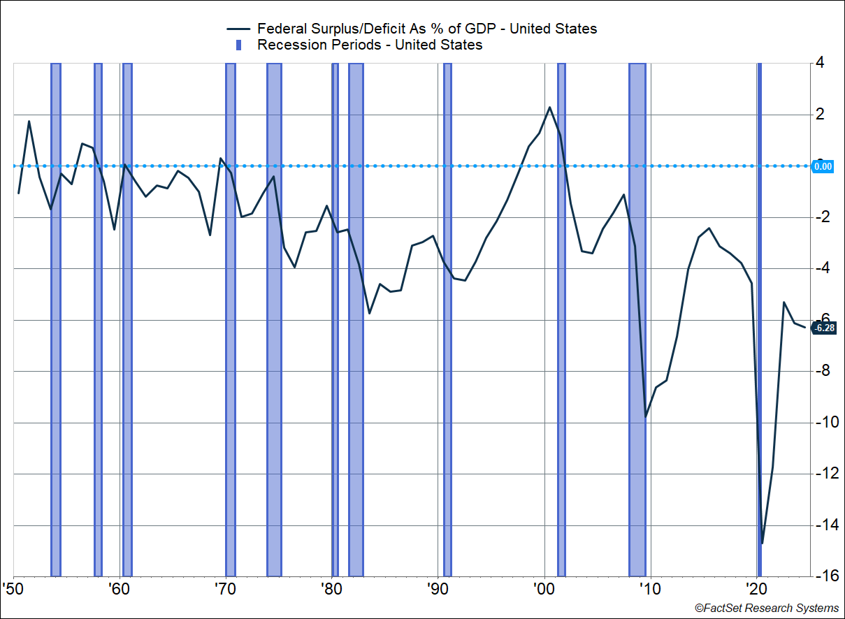 Assuming current tariffs stay in place, and are held up as legal by the courts, deficits are expected to rise to about 6.7% of GDP by 2028. That’s still a massive deficit, but not a big increase relative to where we are now, which means the tailwind for aggregate profits may not be that large.