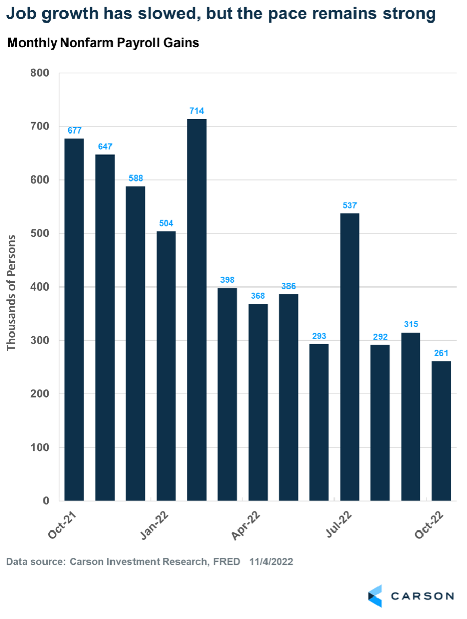 - The employment picture remains strong, with 263,000 jobs created in October.