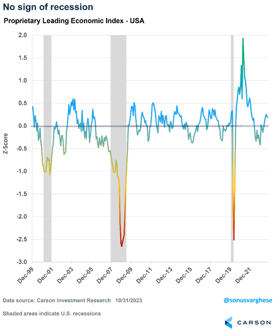 Carson Investment Research took an unpopular contrarian stance in 2023, calling for the expansion to continue and stocks to post solid gains, based simply on what we were seeing in the data. Consensus has moved toward our view in 2024, but we still see quite a bit of gloom out there, with several strategists holding to their recession calls. We take a deep dive into our outlook for 2024 in Carson Investment Research’s Outlook ‘24: Seeing Eye to Eye.