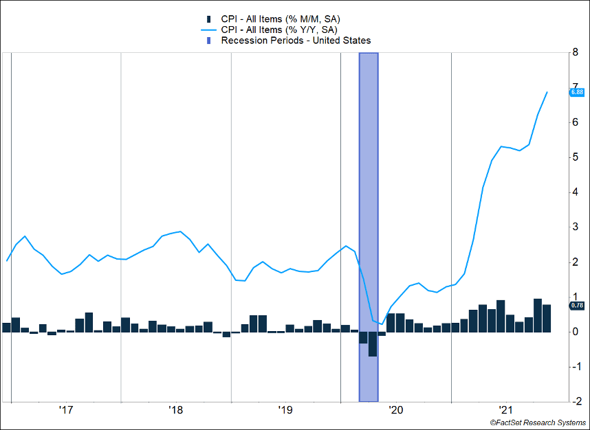 - Food and energy price increases helped push the Consumer Price Index up 0.8% last month, and annual inflation rose to 6.8%.