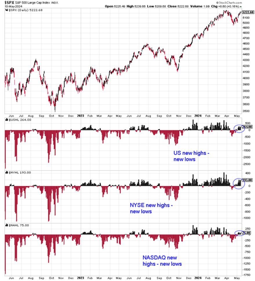 More stocks making 52-week highs is a positive sign. It suggests the foundation of the bullish move is healthy and likely sustainable. The chart below shows that is happening across the board.