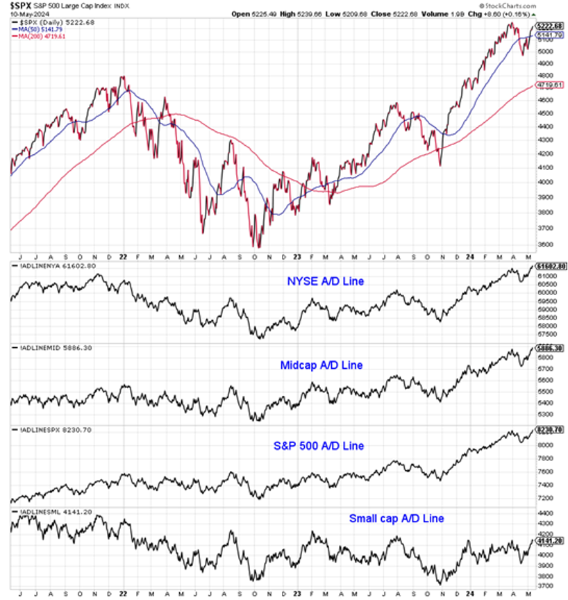 Despite the path of the economy, inflation, the election, geopolitics, or the Fed’s actions, what matters at the end of the day is what markets do. Here are a few signs we’ve noticed recently that suggest the bull market is alive and well and a summer rally remains likely.