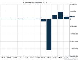 - Payrolls indicated 1.8 million jobs were added or reclaimed in July, beating expectations of 1.5 million and reducing fears job growth would turn negative.