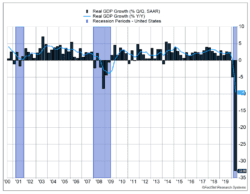The 32.9% decline in U.S. GDP marked the largest slide since the government began to measure quarterly GDP in 1947. As mentioned above and shown in Figure 1, annualized GDP data magnifies the decline by projecting economic trends to continue for a full year.