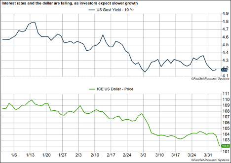 As for April so far, markets have definitively passed their judgment on tariffs. From the perspective of tariffs’ potential impact on the earnings outlook and overall economic risk, the Trump administration’s current policy path is not market friendly. (More on that below.) That doesn’t mean it’s necessarily bad policy in itself, but it does mean it’s a negative policy choice for investors. There are still opportunities to fine tune the policy and any good news is likely to get a positive market reaction. On the other hand, doubling down and urging the American people simply to trust the president could possibly be politically viable, but market participants aren’t interested in politics and it’s likely this approach would do little to relieve the current market pressure.