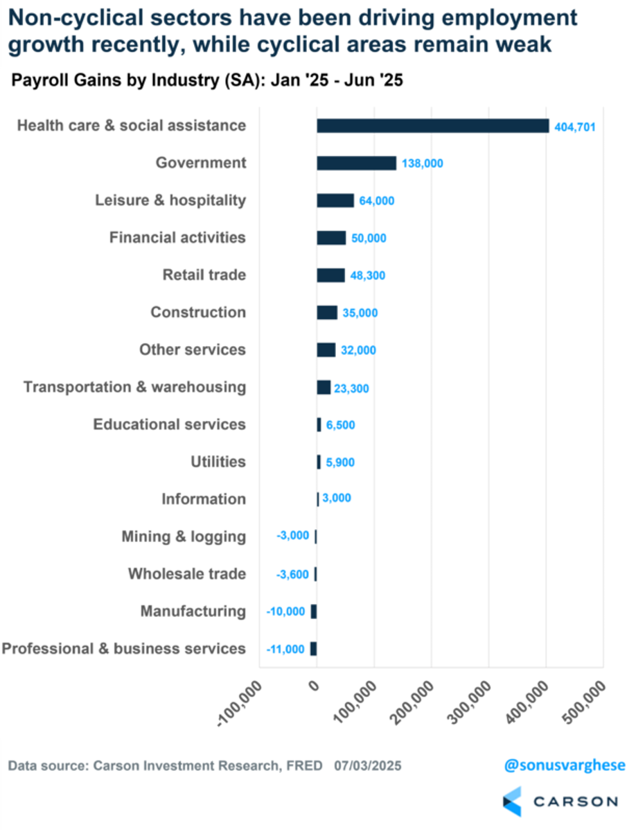As has been the case for several months now, job growth is mainly being driven by non-cyclical areas of the economy: