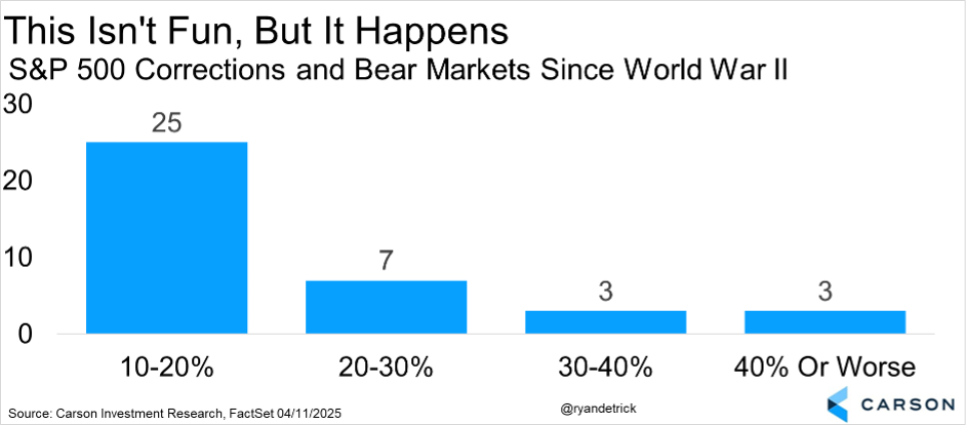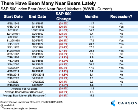 If you’ve invested in equities the past seven weeks it hasn’t been very fun; we can likely agree there. At the same time, after more than a 70% rally from the October 2022 lows and not even a 10% correction last year, we were on record that a 10-15% correction was likely this year. No, we didn’t expect a near bear market with historic volatility, but we also (like many) didn’t expect tariffs to be as high and wide ranging as they have been either.