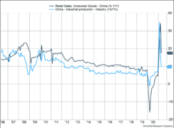 China’s industrial prowess remains impressive. Industrial production dropped much less during the lockdowns than it did in other countries; yet, it still managed to rally 9.8% last month.