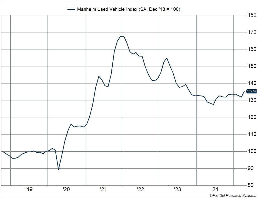 Core inflation, as measured by the Fed’s preferred personal consumption expenditures metric (PCE), is currently at 2.7% year over year (as of March). That is already elevated relative to the Fed’s target of 2%. But tariff front-running and higher import costs are likely to at least partially feed into consumer prices. In fact, the Manheim Used Vehicle Index, which tracks auction prices for used vehicles, rose 2.7% in April, a significant jump compared to recent readings in the range of 0.2%. That takes prices to their highest level since October 2023 and came about as Americans rushed to buy cars to get ahead of tariffs (which pushed inventories down). This is going to show up in official inflation data, albeit with a lag. We’re likely to see a sharp pickup in goods inflation over the next several months, including vehicles, appliances, apparel, and consumer electronics, pushing core PCE up to 3.5 – 4% by year end. Even if it turns out to be temporary (or “transitory”), that’s a whole 1.5 – 2%-points above the Fed’s goal.