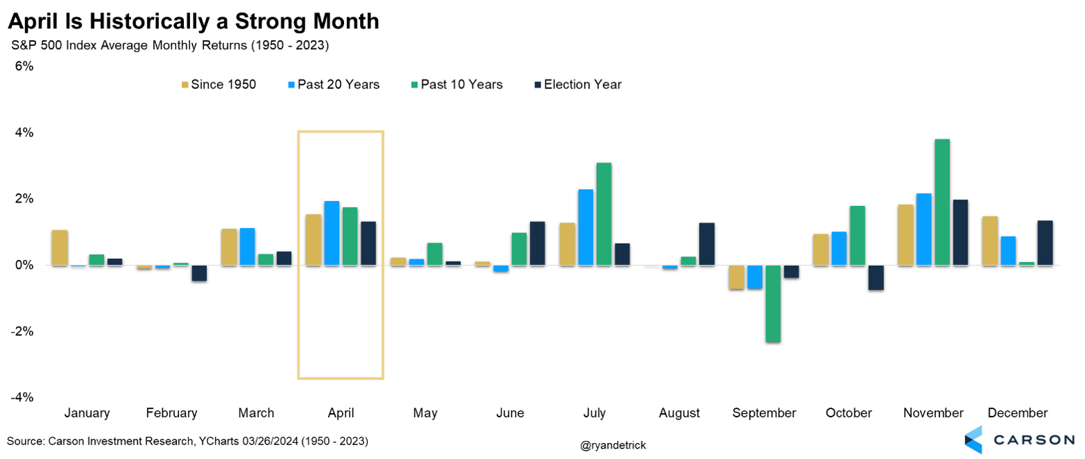 The S&P 500 has averaged 1.5% in April, the second best month of the year (only November is better). April has also been the third best month over the last 10 years, and it has been the fourth best month over the last 20 years and during election years.
