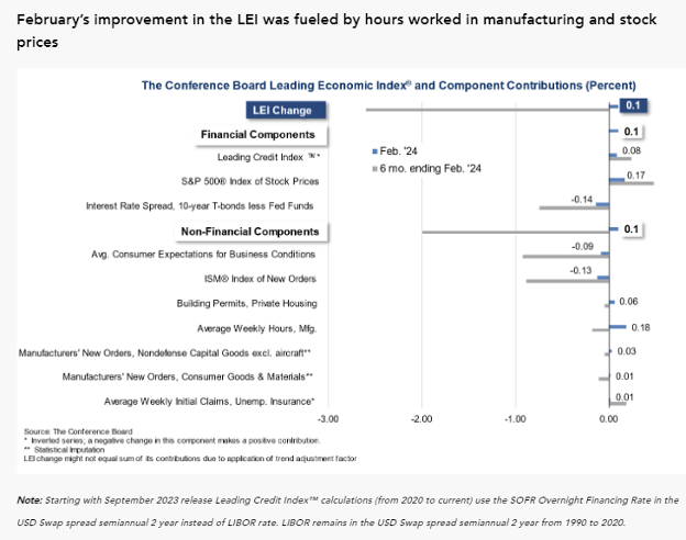 - The Conference Board’s widely followed Leading Economic Index finally had its first monthly gain after 23 consecutive months of declines.
