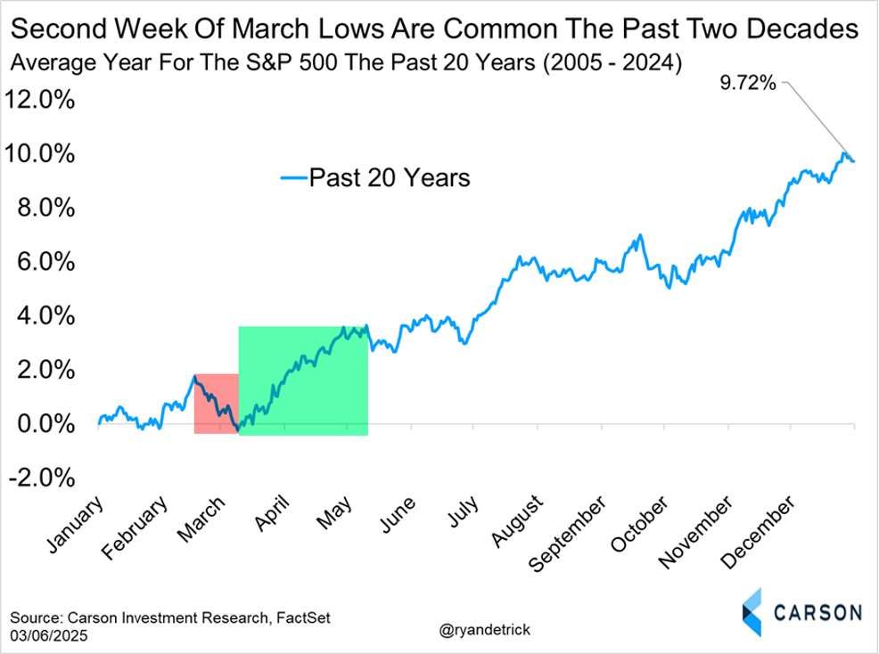 It is important for investors to remember what happened two years ago this month, as the 16th largest bank in the United States went under virtually overnight and many expected the Regional Bank Crisis to spark a new bear market, but it didn’t. The S&P 500 actually finished that month higher. Then five years ago we shut down our economy during a once-a-century pandemic. Stocks eventually fell 34% in five weeks, but then bottomed on March 23, 2020 and finished with a solid 16% gain in 2020. Then who could ever forget the Great Financial Crisis ,which bottomed on March 9, 2009 after a down 56% generational bear market? The point is you might feel scared, frustrated, and confused now, but there have been many other times this has happened and many of them have taken place in this very month, but all were major lows as well.