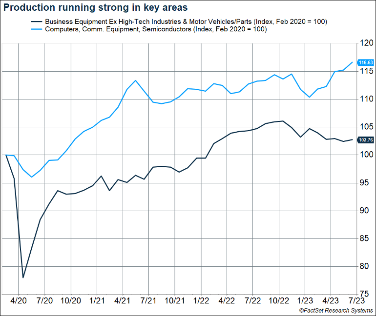 • High-tech industries are running hot, with production up 3.9% and almost 17% above pre-pandemic levels.