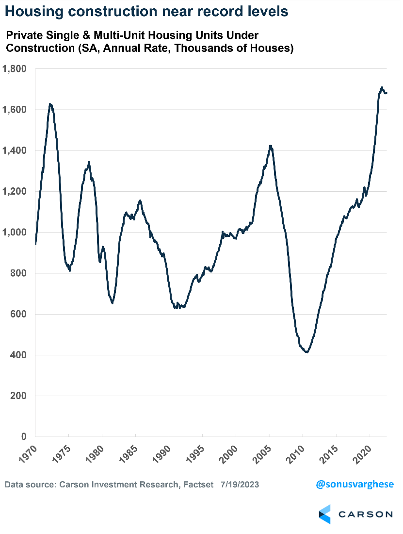 • Total housing units under construction (single-family and multi-family) are near an all-time record.