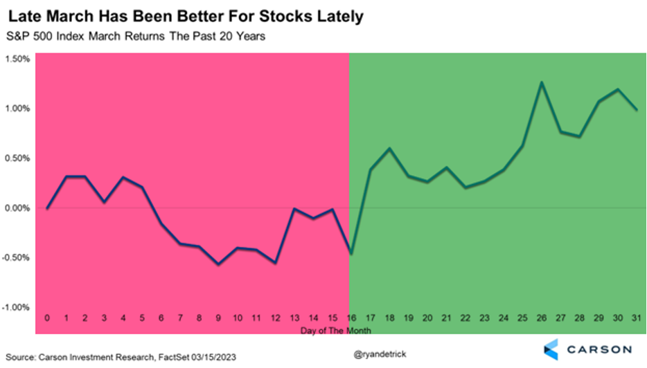 While the first half of March is often dicey, the second half of the month tends to see more green. Better times could be ahead if history is a guide. We think this could be possible.