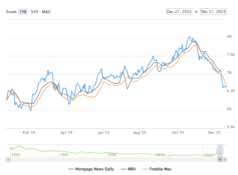 Three, 30-year fixed mortgage rates have fallen from 8% to almost 6.5%. Thanks to markets pricing in interest-rate cuts by the Federal Reserve this year, mortgage rates have fallen sharply. While 6.5% is higher than the mortgage rate most homeowners pay, which is 3-4%, a massive cohort of 25-34-year-olds want homes but are being priced out, assuming they can even find a home to buy. Lower mortgage rates boost perceptions of home affordability.