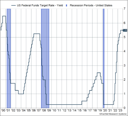 The 10-year Treasury yield entered the year at 3.88%. At that point, it looked like rates might be starting to stabilize after peaking near 4.2% in October 2022 and causing a heap of pain since the summer of 2020. But the Fed was determined in its fight against inflation as the economy continued to defy expectations. By mid-October, the 10-year Treasury yield was just short of 5% and at a level not seen since before the global financial crisis.