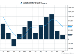 The report wasn’t as weak as it looked. Data for the previous two months was revised upward, with August up to 366,000 (an increase of 131,000) and July up to 1,090,000 (an increase of 38,000). While September’s jobs number was much lower than expected, the unemployment rate decreased to 4.8% from 5.2% in August. This was due partly to some workers choosing to end their job searches and exit the labor force.