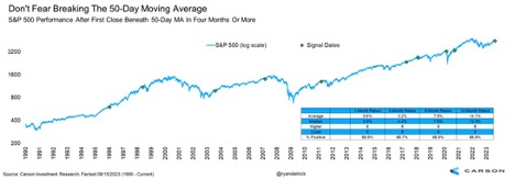 The S&P 500 recently closed below its 50-day moving average for the first time in more than four months. That got a lot of media attention, and rightfully so. However, stocks responded well. In fact, since 1990, the S&P has recovered well nearly every time it broke its moving average, up more than 14% on average one year later.