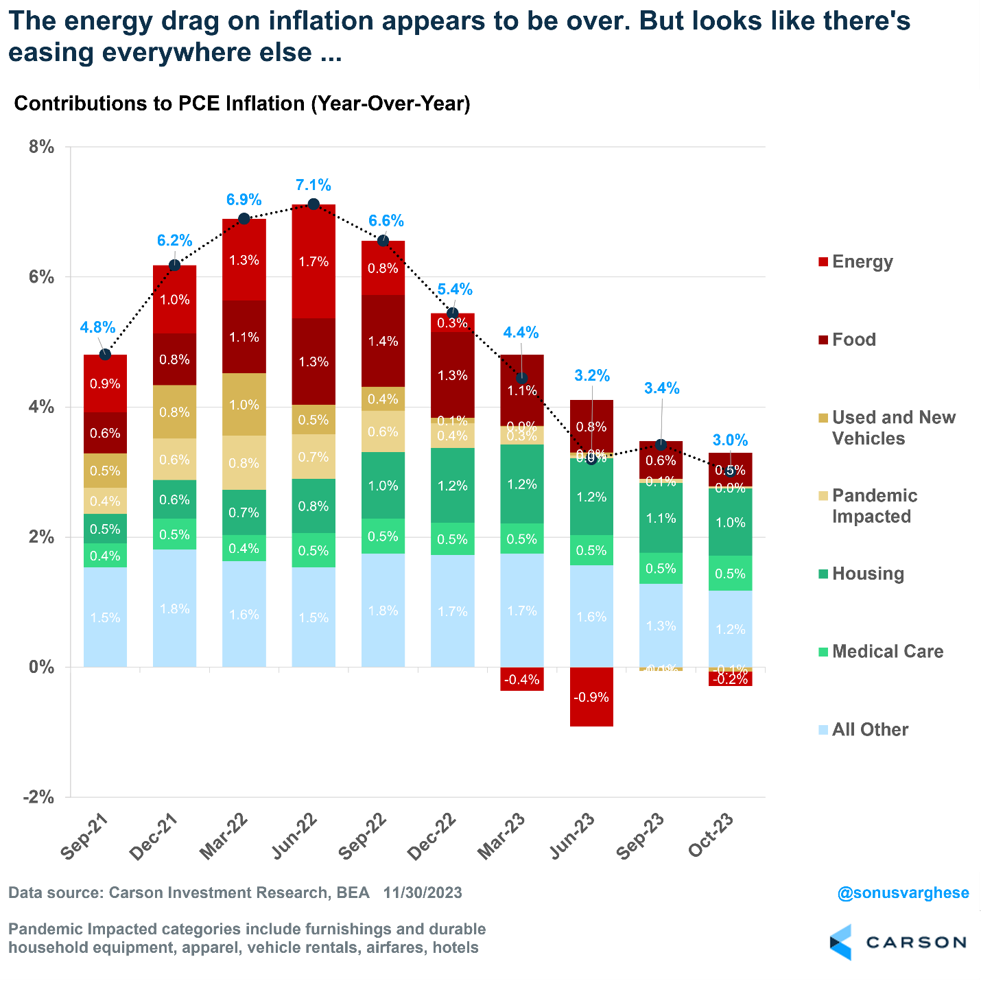 - Inflation continues to come back to earth, suggesting it will no longer be a headwind in 2024.