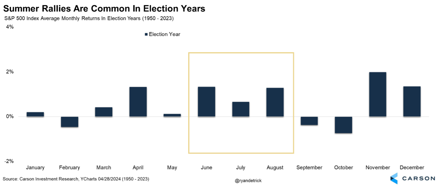 Here’s the same data, but focusing specifically on election years. As you can see, a summer rally is quite normal.