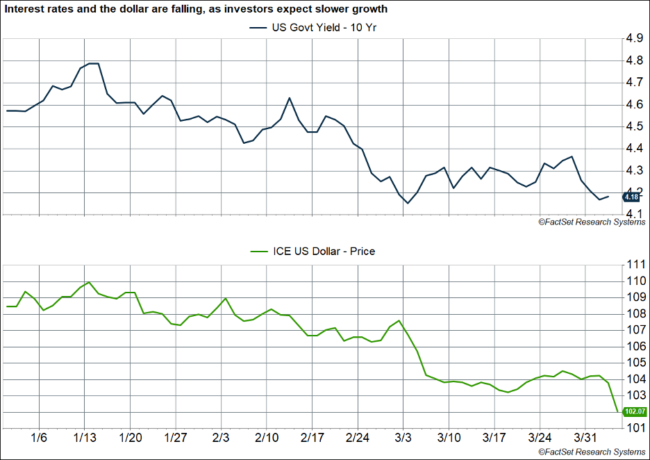 Economists in the administration have also said that the inflationary impact of the tariffs can be muted by a rising dollar. But that assumes that the US economy will continue to outperform the rest of the world and interest rates in the US will stay much higher than elsewhere (attracting flows into USD based assets). But markets are betting the opposite will happen—that growth will collapse, pushing the Fed to cut rates—and so the USD has actually fallen, including after the latest tariffs announcement. That’s going to make imports even more expensive.
